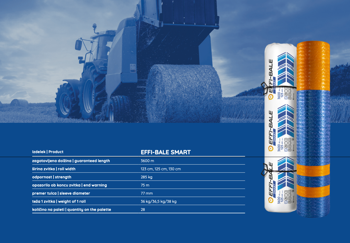 EFFI‑BALESMARTje odgovor na zahteve kmetov po daljšem delu brez potrebe po dopolnjevanju mreže. Ta rešitev prihrani čas pri spravilu pridelkov. Mreža je sestavljena iz 43 niti, namesto standardnih 50, kar pomeni, da ob podobni teži in dimenzijah ponuja 20% povečano dolžino (dodatnih 600 m). Njegova pretržna trdnost se ne razlikuje od standardne izvedbe mreže.