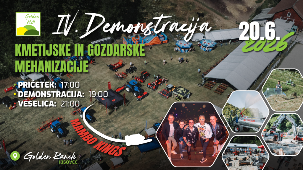 Dogodek bo potekal 20. 6. 2026 na posestvu Golden Ranch v Kisovcu, kjer se bodo predstavili številni proizvajalci in zastopniki kmetijske ter gozdarske mehanizacije.